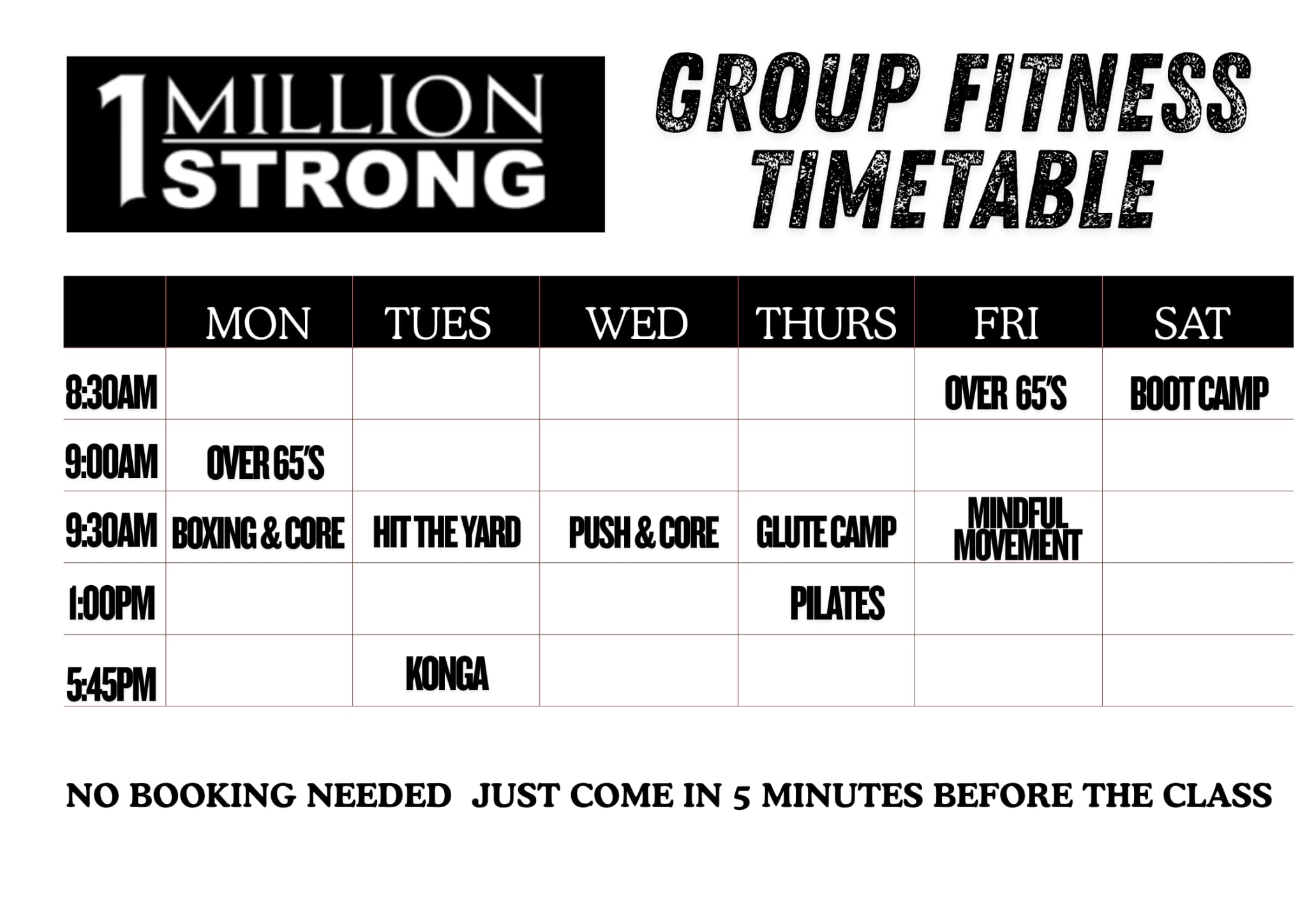 Group fitness timetable